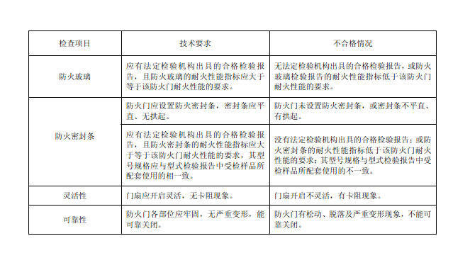 3 檢查防火門所采用防火密封條的耐火性能指標(biāo)是否大于等于該防火門耐火性能的要求。